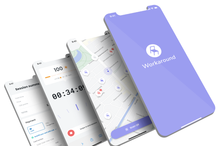 Workaround is even better when you use our free mobile app. You’ll see a live map of all the workspaces that are currently available. You can reserve from home. And you will qualify for big discounts. Join the waitlist above to get your first week completely free.